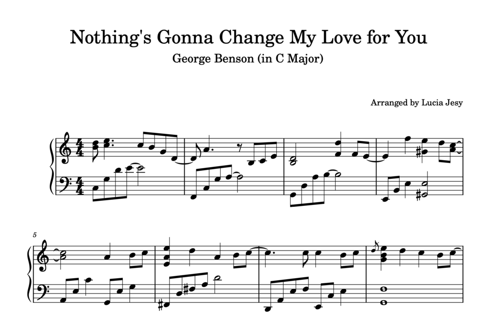 George Benson - Nothing's Gonna Change My Love for You (Sheet Music)$4.99$4.99https://schema.org/InStockusdLucia JesyLucia JesyI want this!Size125 KBLength6 pagesAdd to wishlist New wishlistShareShare on XShare on Facebook Copy linkCopy product URL